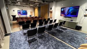 This flexible corporate event space is located in a central Stockholm meeting hub, offering a modern and inviting environment. It is designed to inspire creativity and focus for business gatherings like workshops or presentations. The venue, part of the broader Urban Deli experience, allows for seamless catering and access to full restaurant amenities, making it a convenient corporate event venue rental option.