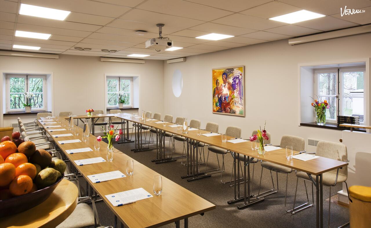 Lokalen är utformad för att erbjuda arbetsro och avskildhet, vilket gör den väl lämpad för styrelsemöten, ledningsgrupper eller kreativa workshops som värdesätter en miljö med karaktär. Inredningen går i en stilren ton som harmonierar med husets historia, samtidigt som tekniken är modern och anpassad för att stödja dagens mötesbehov.