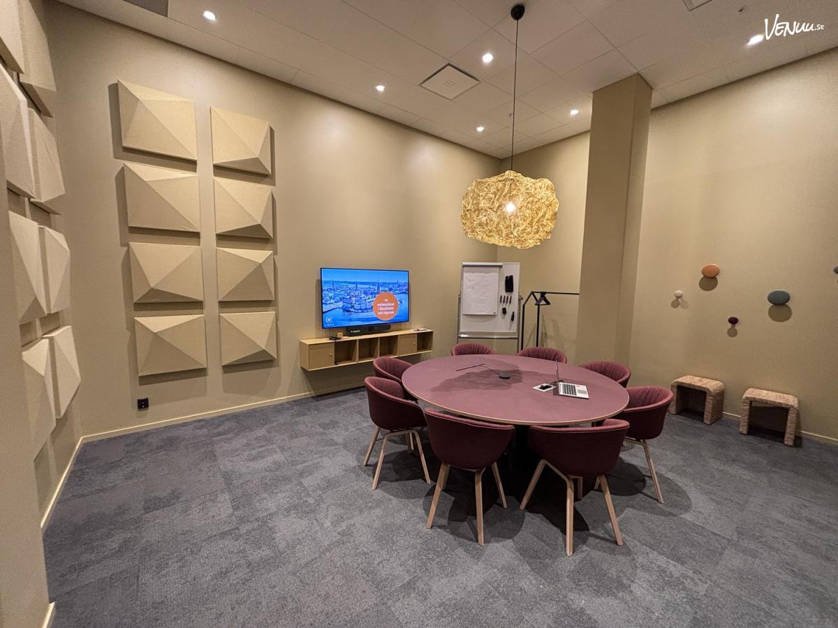 A Cappella är ett trivsamt och funktionellt mötesrum som passar utmärkt för mindre konferenser, styrelsemöten eller workshops. Rummet kan möbleras efter behov och rymmer upp till 16 personer i styrelsesittning, vilket gör det särskilt lämpligt för möten där dialog och samarbete står i fokus. Den mer intima storleken skapar en personlig miljö där deltagarna enkelt kan diskutera och arbeta tillsammans.