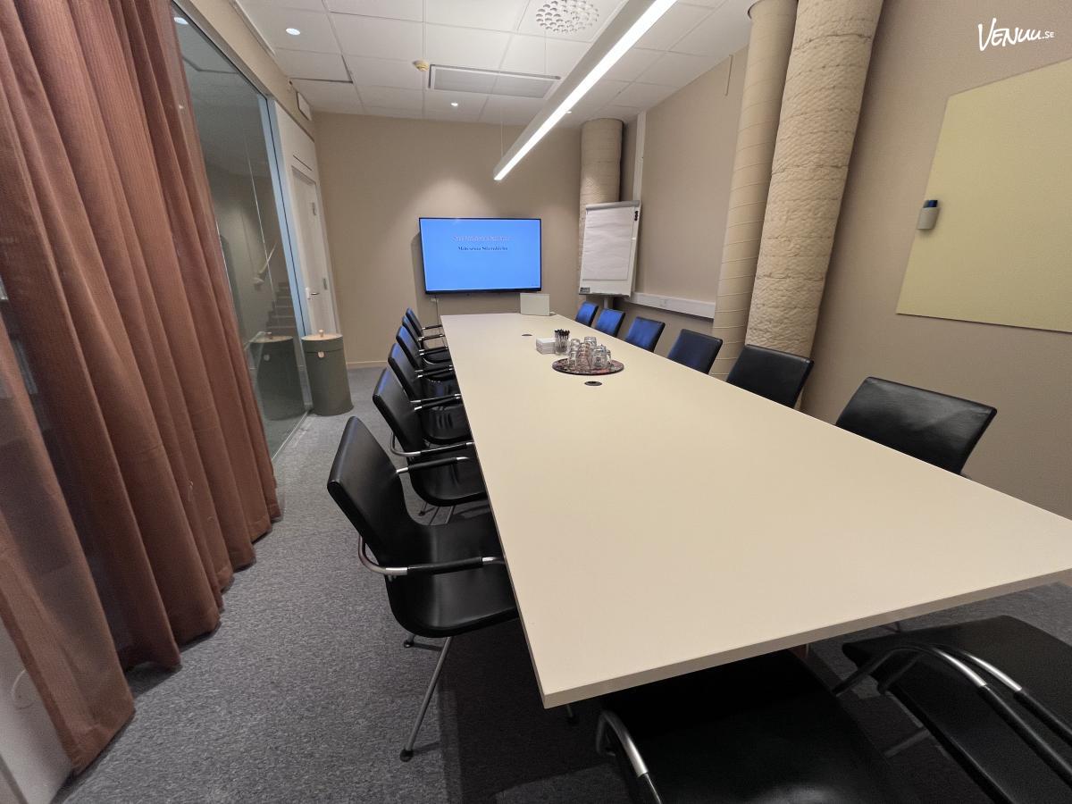 Stiernhielm är ett trivsamt och funktionellt mötesrum som passar bra för mindre konferenser, möten och workshops. Rummet är ett styrelserum med bord för 14 personer.