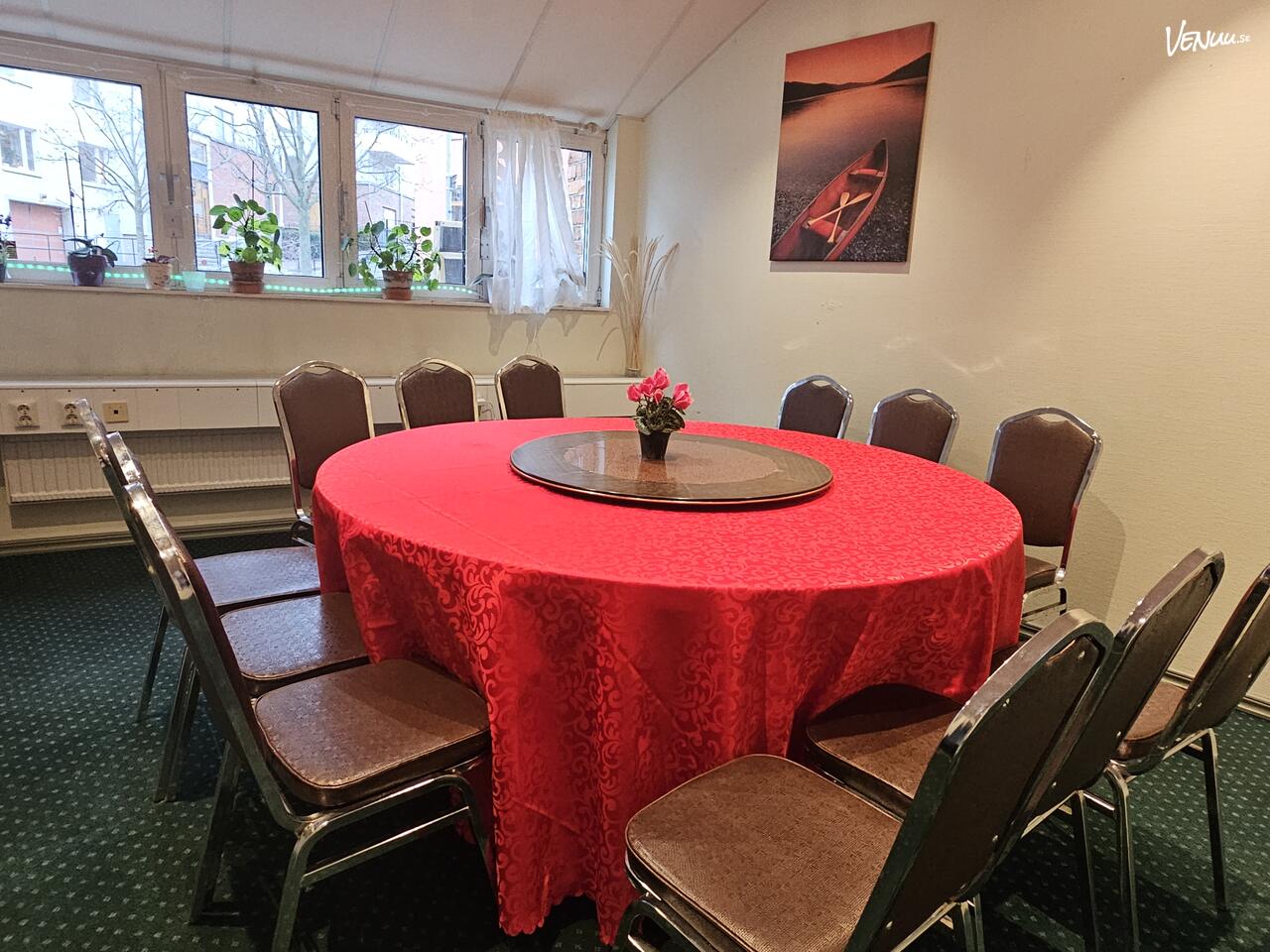 Social matkultur i fokus Rummen är designade för samtal och gemenskap. Mittpunkten är det klassiska runda bordet med en traditionell "Lazy Susan" – en roterande skiva som gör det enkelt och festligt att dela på asiatiska delikatesser. Den röda dukningen skapar en varm, inbjudande atmosfär som andas både tradition och firande.