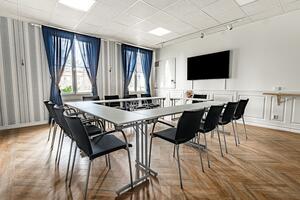 På Haga Slott finner ni lokaler som passar såväl den stora konferensen som det lilla mötet. Falkenberg rymmer 56 personer i biosittning.