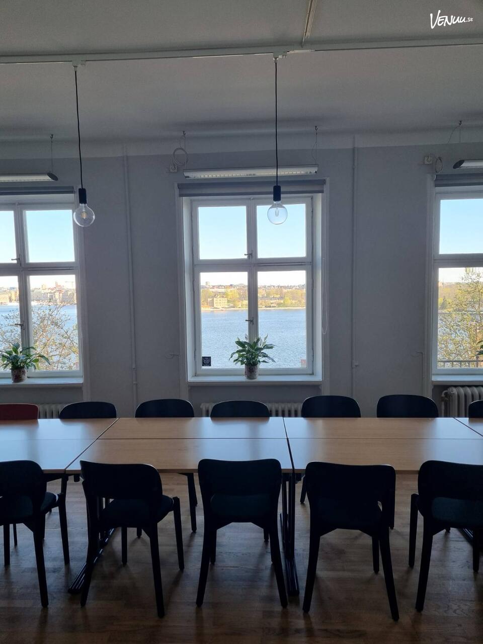 Agne Windmark-rummet bjuder på en svårslagen utsikt över Stockholms glittrande vattenvägar. Här, på gatuplan och med sina 36 kvadratmeter, får ni en inspirerande miljö för möten och samtal. Rummet passar även för yoga eller andra gruppaktiviteter.