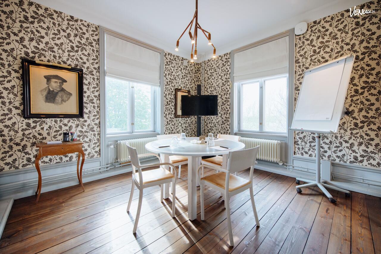 Stjärnrummet är ett ljust och rofyllt rum med utsikt mot Stockholms inre skärgård – perfekt för det lilla personliga mötet. Rummet har ett runt bord med plats för upp till fyra personer och är utrustat med blädderblock, whiteboard, LCD-skärm och internetuppkoppling.