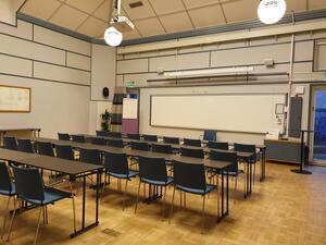 GTS Konferens / Stora hörsalen has room for 100 seated conference guests in the middle of Gothenburg. The venue is newly renovated and is providing food throughout the day to make sure your guests are taken care of!