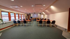 En konferenslokal med naturligt dagsljus och all behövlig teknisk utrustning i centrala Göteborg.