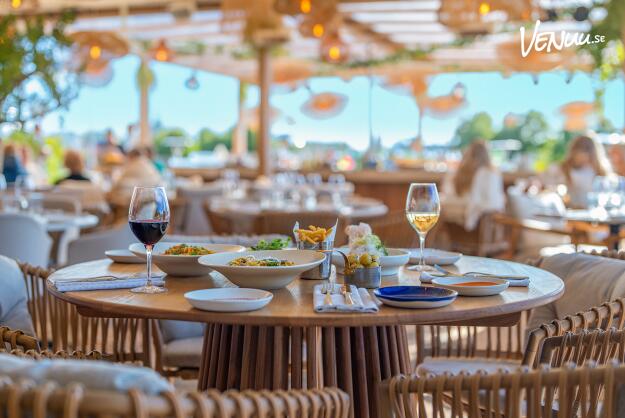 I restaurangen väntar en medelhavsinspirerad smakupplevelse med fantastisk utsikt över vattnet och Kungliga slottet. Här är det en harmonisk atmosfär och inredningen är vackert inredd med eleganta marmorbord och stilrena rottingdetaljer.