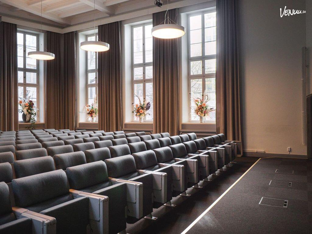 Vår hörsal Bryggarkungen har plats för 120-140 personer i biosittning. Det höga taket och de stora fönstren ger ett fantastiskt ljusinsläpp och gör att rummet känns väldigt rymligt. Bryggerkungen är mycket lämplig för konferenser, utbildningar och andra talarevent där bra akustik är viktigt. Många väljer till och med att helt strunta i att använda mikrofoner.