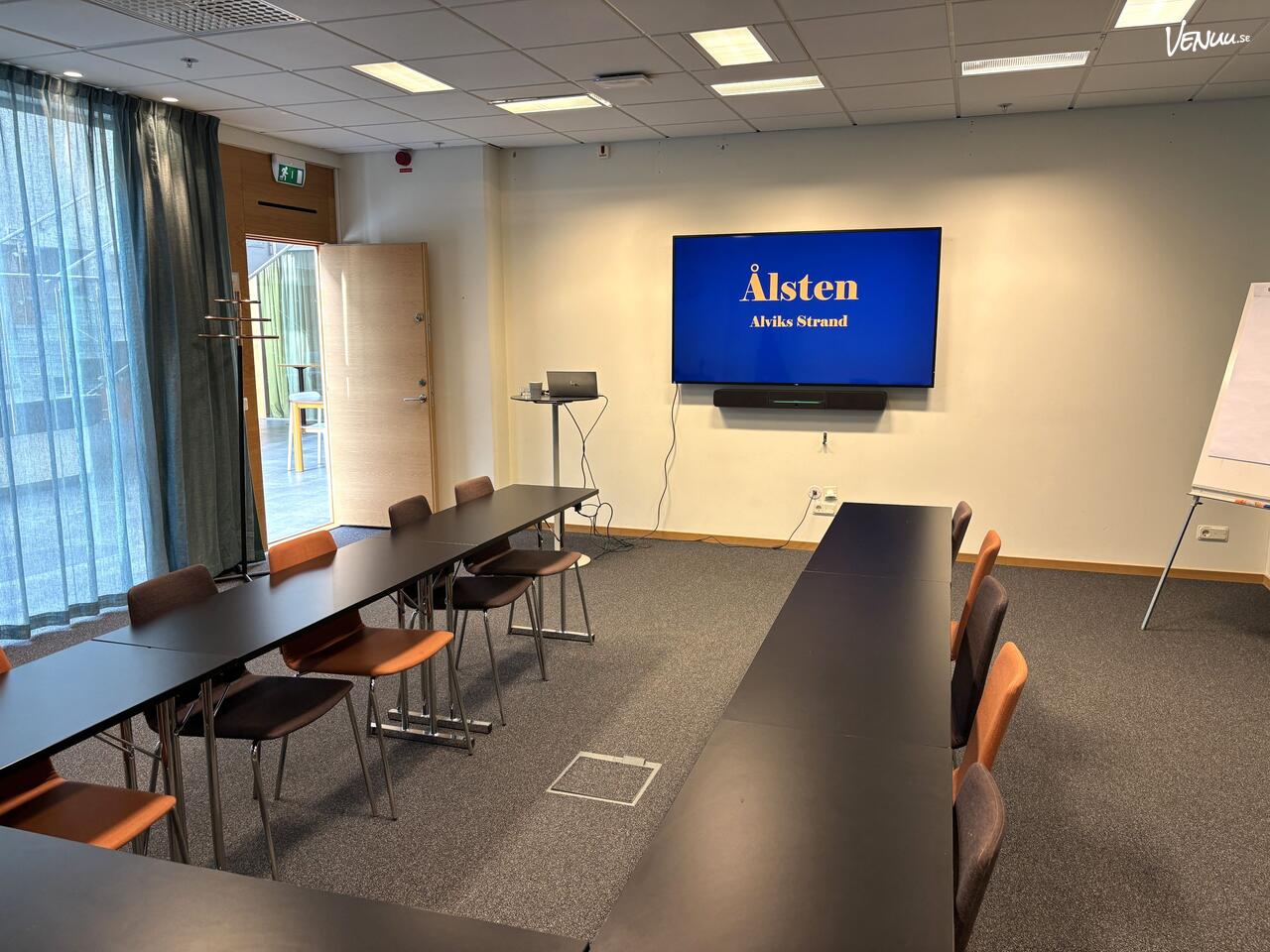 Ålsten är ett ljust och funktionellt mötesrum som passar perfekt för mindre konferenser, möten eller workshops. Rummet kan ta upp till 30 personer i biosittning, 20 personer i skolsittning och 16 personer i styrelsesittning, vilket gör det väl anpassat för både presentationer och mer diskussionsbaserade möten. Den flexibla möbleringen gör det enkelt att anpassa rummet efter mötets upplägg och skapa en miljö där deltagarna kan arbeta effektivt tillsammans.