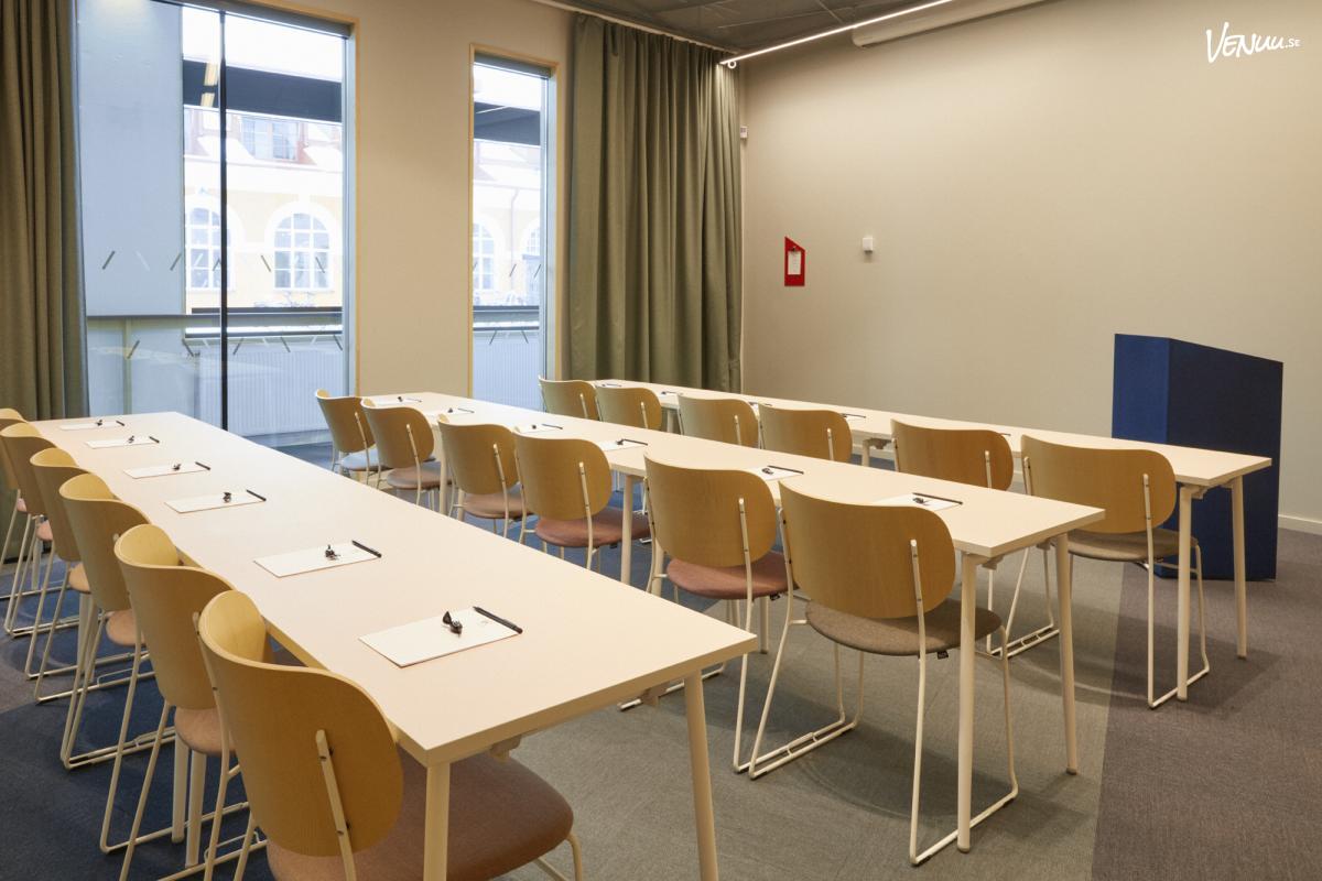 Nr 4 är ett funktionellt och flexibelt mötesrum som passar bra för mindre konferenser, möten eller workshops. Rummet kan möbleras efter behov beroende på mötets upplägg och rymmer upp till 16 personer i biosittning, 10 personer i skolsittning och 8 personer i styrelsesittning. Den mindre storleken gör rummet särskilt lämpligt för möten där diskussion, samarbete och idéutbyte står i fokus.