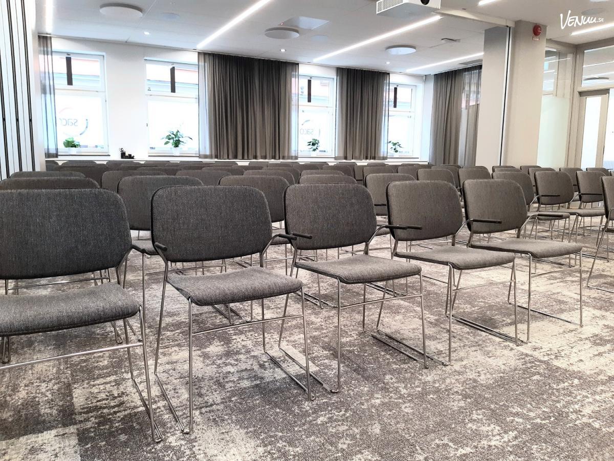 Gamla Stan är ett rymligt och flexibelt konferensrum som passar bra för möten, presentationer och utbildningar. Rummet kan möbleras efter olika behov och rymmer upp till 72 personer i biosittning, 36 personer i skolsittning och 24 personer i styrelsesittning. Den generösa ytan gör lokalen lämplig både för större konferenser och för möten där deltagarna arbetar tillsammans i grupper.