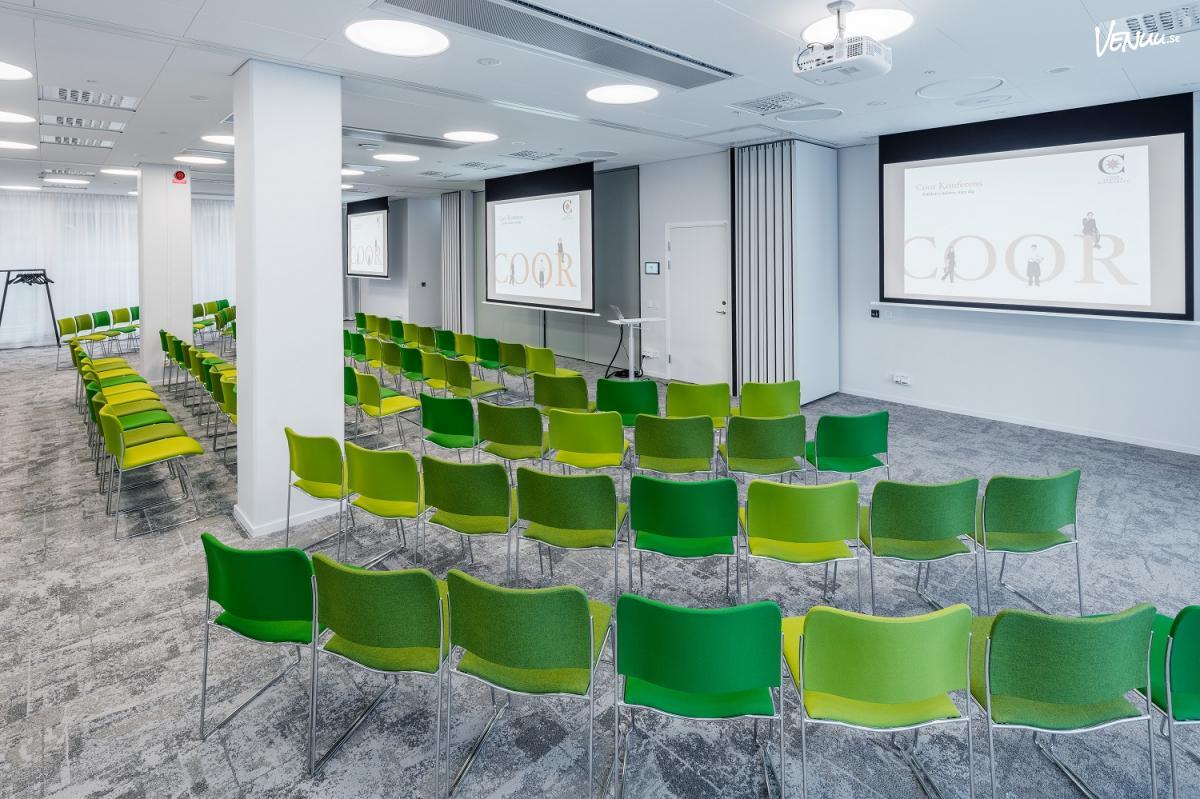 Södermalm är den största möteslokalen på Coor Konferens Västgötagatan och passar perfekt för större konferenser, utbildningar, seminarier och presentationer. Lokalen omfattar 128 kvm och rymmer upp till 100 personer i biosittning, 76 personer i skolsittning eller 60 personer i ö-sittning. Den generösa storleken gör rummet till ett utmärkt val när många deltagare ska samlas i en professionell och bekväm miljö.