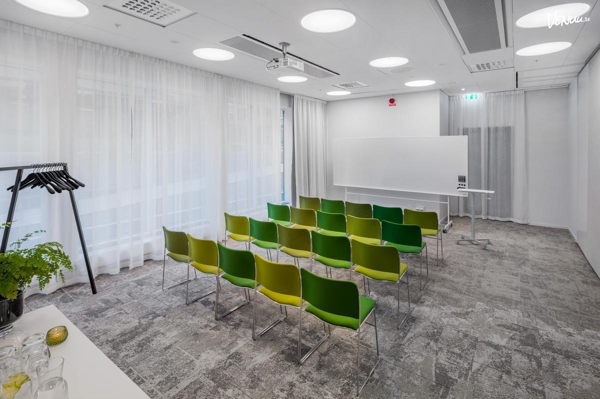 Lokalen är utformad för att skapa en effektiv och bekväm mötesmiljö. Här finns modern mötesteknik som gör det enkelt att hålla presentationer, föreläsningar och digitala möten. Den flexibla planlösningen gör det möjligt att anpassa möbleringen efter mötets upplägg, oavsett om ni planerar en utbildning, ett seminarium eller en större workshop.
