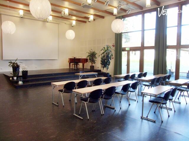 Vår lokal kan enkelt anpassas för allt från workshops till stora föreläsningar. Nedan ser ni maxantal beroende på sittning.