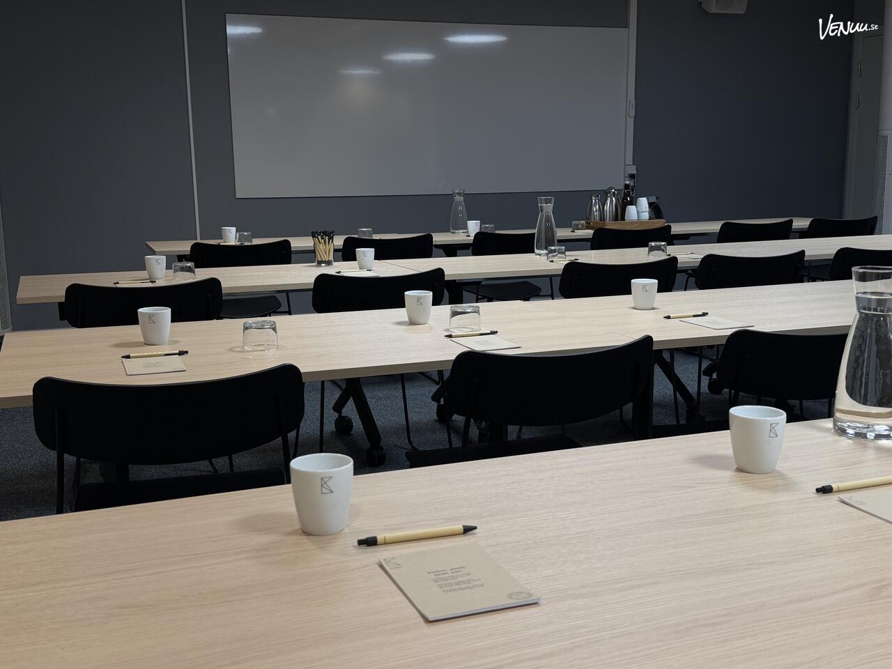 Lokalen fungerar särskilt bra för workshops och arbetsmöten i ö-sittning eller U-form, där deltagarna aktivt deltar i diskussioner och gemensamt beslutsfattande. Även styrelsemöten och projektavstämningar får en naturlig plats här, tack vare rummets balanserade storlek och flexibla möbleringsmöjligheter.