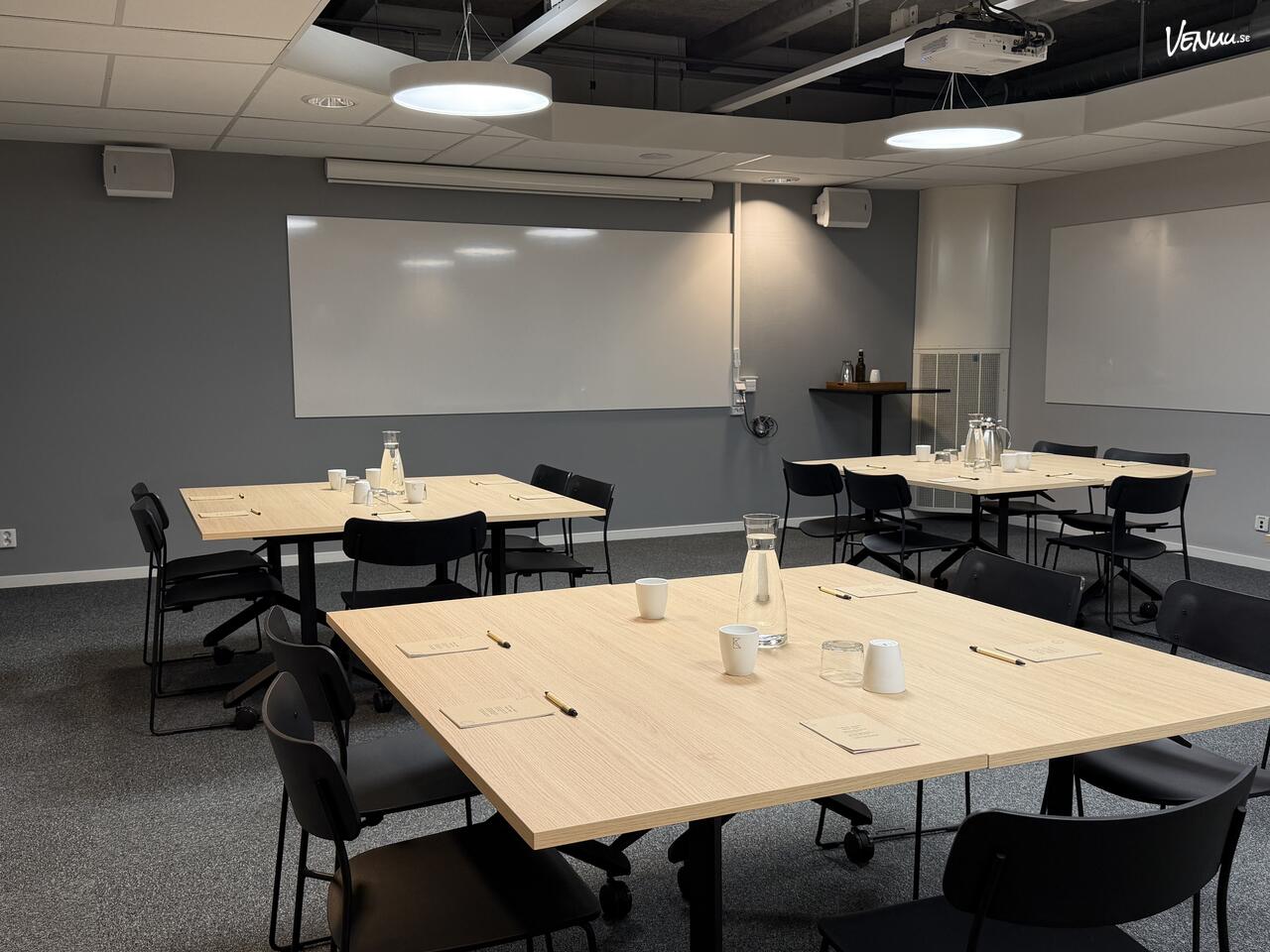 Med möjlighet till skolsittning, öar eller U-bord kan rummet enkelt anpassas för både presentationer och grupparbeten. Det gör Humlegården till ett bra val för exempelvis teamdagar, processmöten och utvecklingsworkshops där deltagarna behöver växla mellan att lyssna och aktivt bidra.