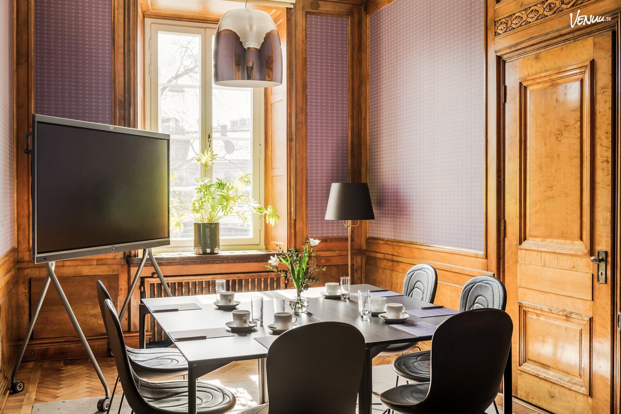 Sekretariatet är ett mindre rum mellan Direktionen och Biblioteket med utsikt över Berzelii park. Mötesrummet rymmer upp till 3 personer och är stilfullt dekorerat med original paneler och stuckaturer från slutet av 1800-talet.