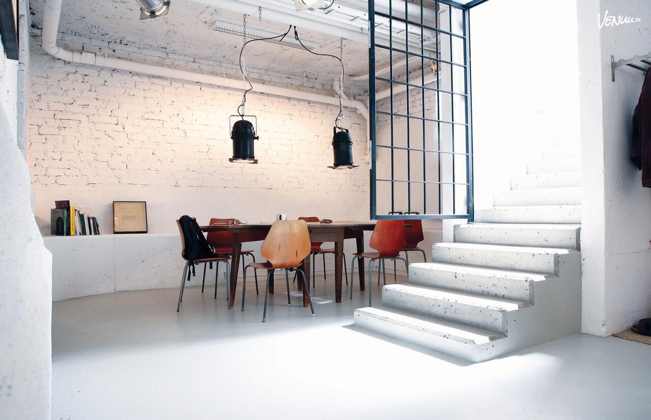 Studion består av dels en mkt trivsam entré/lounge som kan anpassas efter behov och en större öppen studiodel med fullt utrustat kök.