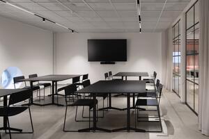 En avslappnad och stilren möteslokal med flexibla lösningar. Passar både för konferenser, workshops och nätverksträffar där en modern och dynamisk miljö efterfrågas.