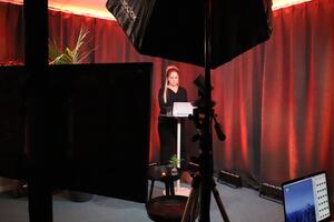 En modern inspelningsstudio med både ljud- och bildteknik. Perfekt att boka för professionell podcastproduktion, livesändning eller hybridmöten.